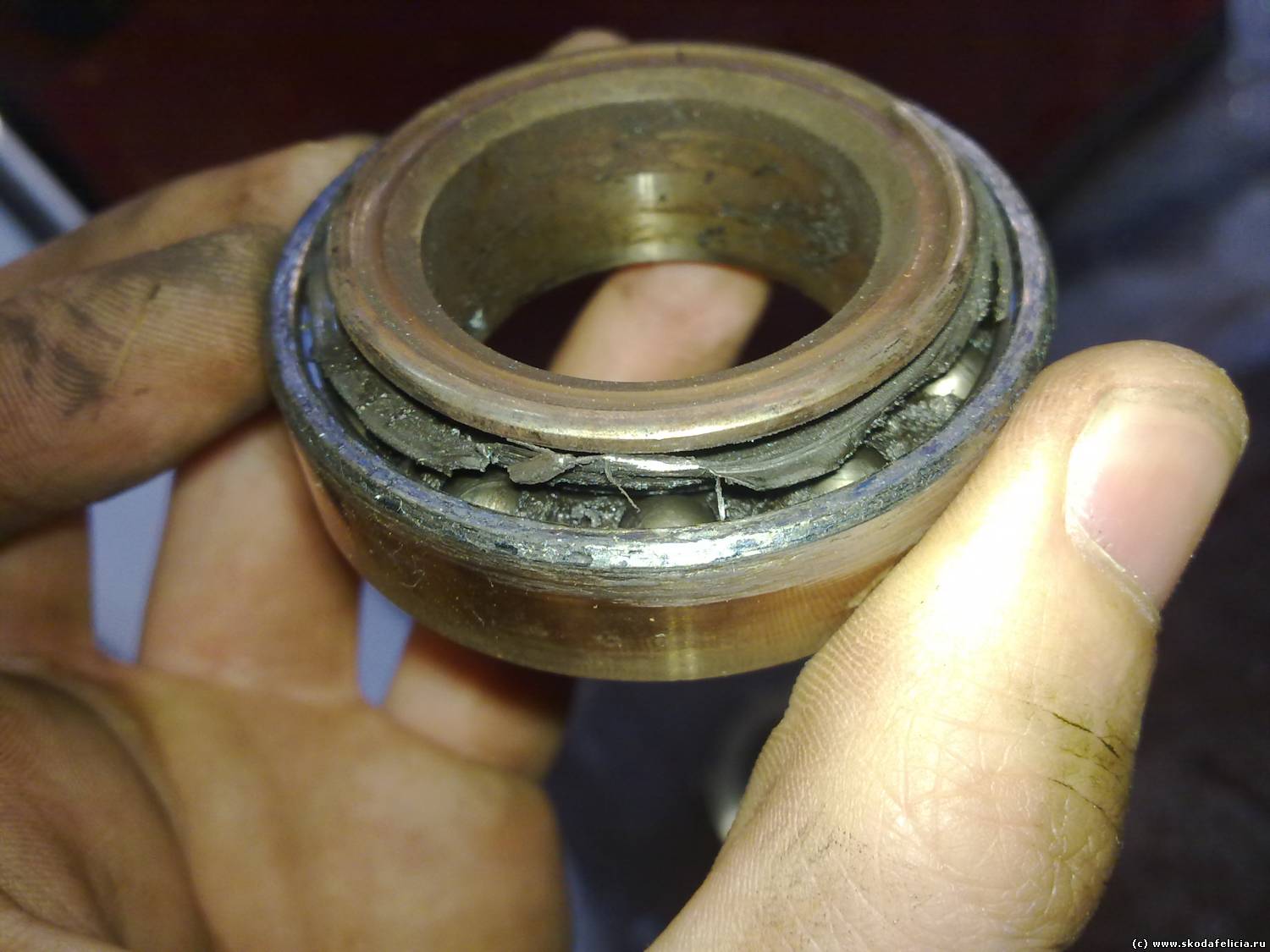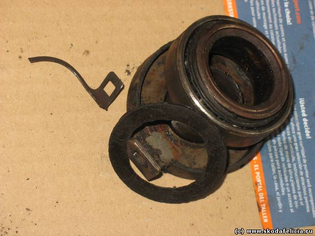 | Было у меня такое... Причём, новый подшипник развалился через 2тыс км после замены сцепления... Ещё и ось, на которой двигается, потёр: канавка получилась Пришлось опять разбирать, новый ставить. км 300 проехал, пока вроде нормально. Боюсь, как бы он из-за этой канавки опять не развалился...